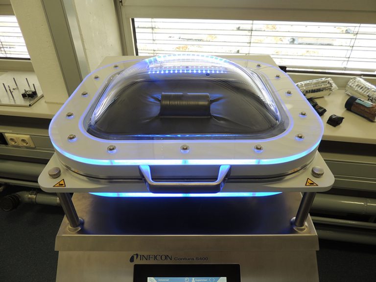 Dichtheitsprüfgerät Contura S400 von Inficon in zwei Varianten auf der Anuga FoodTec: in einer Verpackungslinie und als Stand-Alone....