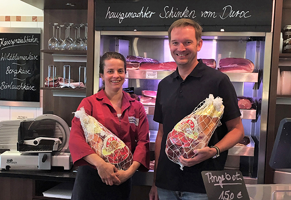 Daniela und Wulf Spriestersbach aus der Fleischerei Ellinghaus in Gevelsberg zählen zu den sieben neuen Parmaschinken-Spezialisten des Consorzio del Prosciutto...