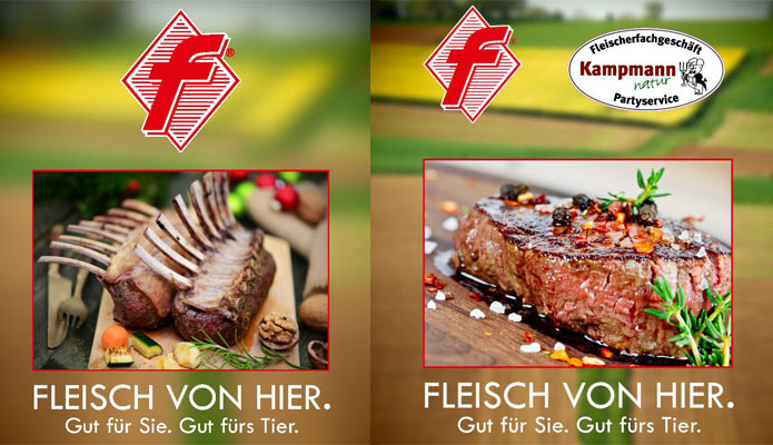 Für Fleischereien, die Fleisch regional beziehen, präsentiert der Fleischerverband Nordrhein-Westfalen eine Serie von Werbemitteln für Rind, Kalb, Schwein, Lamm und...