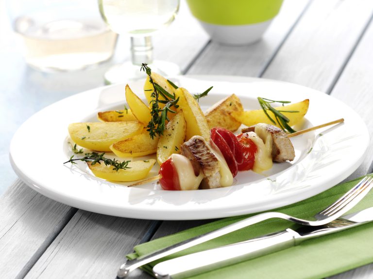 Kartoffeln schälen, waschen und in Spalten schneiden. 1 EL Öl in einer beschichteten Pfanne erhitzen, Kartoffeln zugeben und bei mittlerer...