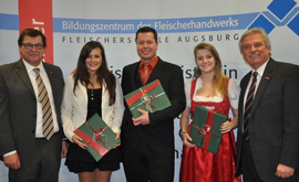 Bei der Zeugnisübergabe für die Absolventen des 25. Verkaufsleiter/innen-Kurses der Fleischerschule Augsburg in der Handwerkskammer für Schwaben hob der bayrische...