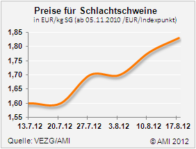 Am 17. August 2012 hob die Vereinigung der Erzeugergemeinschaften den Vereinigungspreis für Schlachtschweine der Handelsklasse E gegenüber der Vorwoche um...