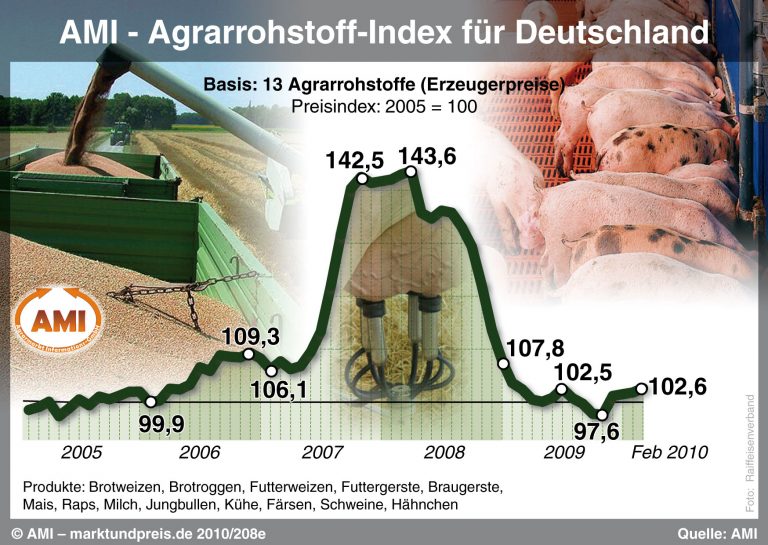 Bonn. Der neue Agrarrohstoff-Index der Agrarmarkt Informations GmbH (AMI) bildet sowohl die Erlösentwicklung der landwirtschaftlichen Betriebe als auch die Rohstoffkosten...