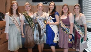 Erstmals waren unter den rund 50 Gästen bei der Krönung der neuen Weißwurstkönigin in der „Königlichen Weißwurstschule Bayerischer Wald“ in der Metzgerei Einsle in Bodenmais auch vier weitere Produktköniginnen zu Gast, die Elisabeth Schadl bei ihren Terminen kennengelernt hat: die Schrobenhausener Spargelkönigin Elisabeth, ihre Abensberger Kollegin Nora, die 46. Bayerische Kartoffelkönigin Daniela I. und die Fränkischer Kirschenkönigin Lena I. Als Ehrengäste gekommen waren der ehemalige bayerische Landwirtschaftsminister Helmut Brunner, der Landrat des Landkreises Regen Ronny Raith, der Koch und Bio-Wagyu-Züchter Ludwig „Lucki“ Maurer und der Geschäftsführer des Fleischerverband Bayern Lars Bubnick.