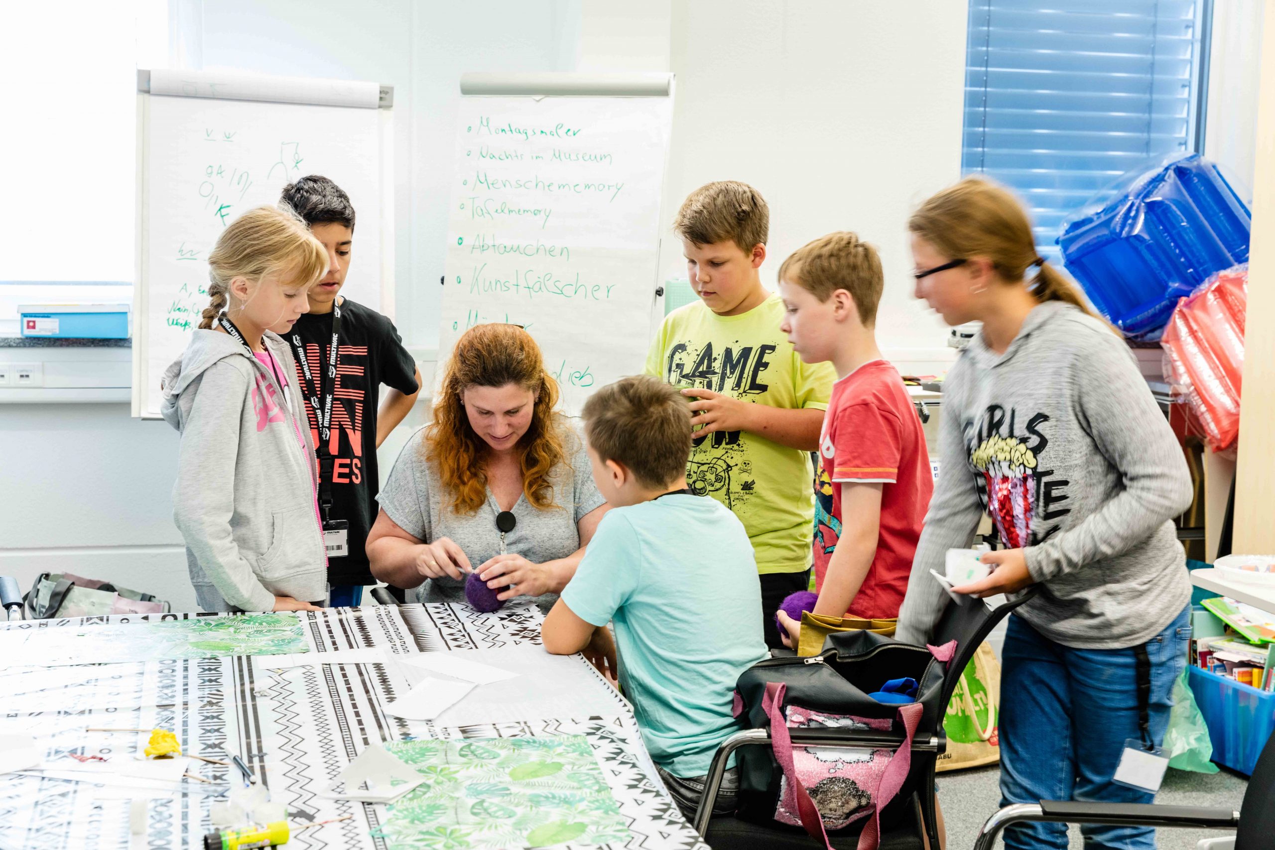 Vor dem täglichen Start des Programms, ab 7.30 Uhr, wird optional eine Kinderbetreuung angeboten. Nachmittags finden zudem Kreativeinheiten statt und es gibt ein buntes Programm für die einzelnen Gruppen – ob Eis essen, Füße im Bach baumeln lassen, kleine Erkundungsgänge unternehmen oder gemeinsames Lesen.