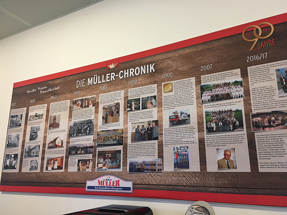 Einen Blick zurück ließ sich natürlich auch nicht der ehemalige Inhaber Robert Müller (89) nehmen, der die Anwesenden in einer kurzen Ansprache mit Anekdoten aus seinem Leben amüsierte. Heute wird das Unternehmen von seinem Sohn Peter Schmitt und seinem Enkel Heiko Klitsch geführt. Robert Müller allerdings war es, der 1960 das Unternehmen übernahm und früh erkannte, dass eine Filialisierung der Weg in die Zukunft sein würde. 1968 eröffnete die erste Filiale in Hanau. Dieser Weg wurde seitdem weiter erfolgreich beschritten: Heute gibt es rund 75 Verkaufsstellen im Rhein-Main-Gebiet, Thüringen, Niedersachsen, Nordbayern und Rheinland-Pfalz. Alle werden von der Zentrale in Flieden-Rückers aus beliefert.