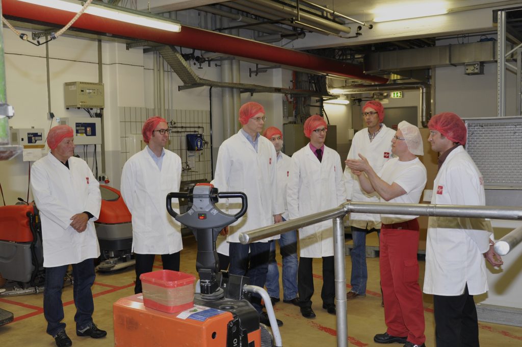 Kühne stellte den Wirtschaftsjunioren das traditionsreiche Unternehmen vor, das dieses Jahr sein 90-jähriges Bestehen feiert. Neben den zukunftsweisenden Investitionsprojekten berichtete er auch über den vielschichtigen Alltag der Mitarbeiter am Stammsitz in Kulmbach. Im Anschluss wurden die Wirtschaftsjunioren durch das knapp 8.000 m² große Werk 1 geführt, wo sie einen umfassenden Einblick in den Herstellungsprozess von streufähigen Produkten gewannen und sich von den hochmodernen RAPS-Technologien überzeugen konnten. „Die aktuellen Investitionen in die Kulmbacher Werke belegen die langfristige Bindung an die Region. Insbesondere überzeugt hat uns die Coating-Technologie zur Ummantelung von Rohstoffen, mit der zum Beispiel der Sauereffekt von süß-sauren Gummibärchen gezielt bestimmt werden kann,“ so Florian Naumann, Vorstand der Kulmbacher Wirtschaftsjunioren. Bei einem ungezwungenen Get-Together im Anschluss an die Führung fand ein fachlicher Austausch statt und vertiefende Fragen wurden beantwortet.