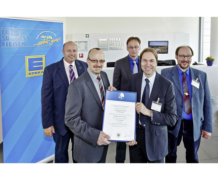 Nach Einführung und erfolgreicher Auditierung des Arbeitsschutz-Management-Systems erhielt Edeka Südwestfleisch in Rheinstetten jüngst das BGN-Gütesiegel „Sicher mit System“. Regelmäßige Sicherheitsschulungen des Personals und speziell der Führungskräfte haben in dem Werk Rheinstetten ein solides Sicherheitsbewusstsein geschaffen, das sich am Unfallgeschehen ablesen lässt: So sind nicht nur die Unfallzahlen gesunken, sondern auch die Schwere der Unfälle konnte reduziert werden. Damit der Arbeits- und Gesundheitsschutz kontinuierlich weiterentwickelt wird, trifft sich das gesamte Führungsteam regelmäßig zu Arbeitsschutz-Ausschüssen, in denen anfallende Probleme diskutiert, Lösungen gesucht und Umsetzungen vorbereitet werden. Dabei arbeiten Werksleitung, Betriebsrat, Fachkraft für Arbeitssicherheit, Betriebsarzt und Berufsgenossenschaft sowie Arbeitsschutzbehörden eng zusammen. Die Ergebnisse und Erfahrungen haben Edeka auch dazu bewogen, am Prämienverfahren der BGN teilzunehmen.