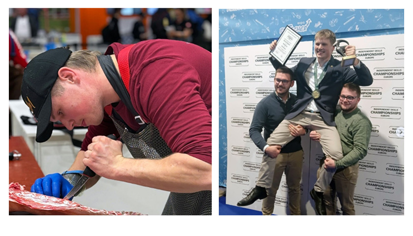 Für das deutsche Fleischerhandwerk trat David Hilpert (mi.) aus Weißenburg in Mittelfranken an, der sich bei einem nationalen Ausscheidungswettbewerb auf der IFFA 2025 durchgesetzt hatte. Mit ausnahmslos hervorragenden Leistungen setzte er sich durch und holte die Goldmedaille. Zweiter wurde Sven Lauber (li,. Schweiz) vor Simone Tieber (re., Österreich). Auf Platz 4 kam Asbjörn Geirsson (Island). Betreut wurde David Hilpert von der Expertin und Trainerin Britta Sickenberger vom Bundesleistungszentrum J.A. Heyne in Weiterstadt, die durch das zielgerichtete Training maßgeblichen Anteil an dem Erfolg hat. Teilnehmer aus Deutschland belegten unter ihrer Anleitung schon mehrfach Spitzenplätze.