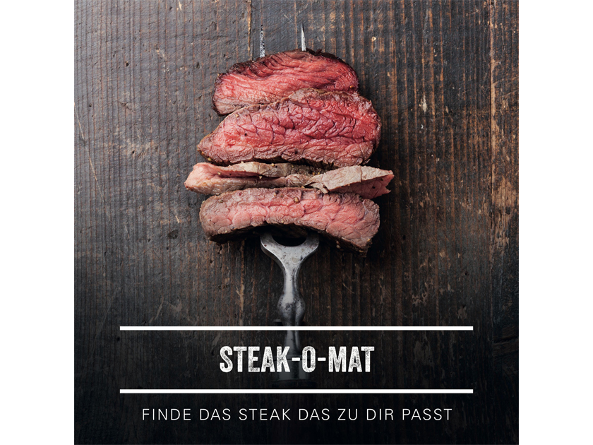 Die Online-Metzgerei Goumetfleisch.de hat mit einer Projektgruppe der Fachhochschule Niederrhein den ersten Wunschsteak-Finder Deutschlands entwickelt: den Steak-o-mat. Das Unternehmen verspricht: „So findet ab sofort jeder das Steak, das perfekt zu ihm und seinen Vorlieben passt.“
