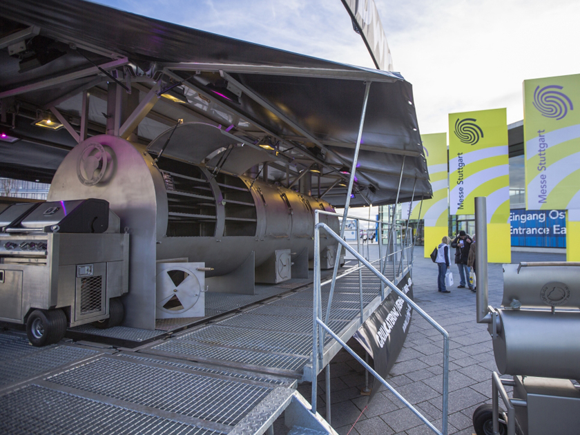 Eingefleischte Grillspezialisten diskutieren leidenschaftlich die Vorzüge von Smoker, Holzkohle- oder Gasgrill. Im Profibereich hat das Ganze freilich andere Dimensionen: Die Süffa bietet einen Überblick über das Angebot vom kostengünstigen Gastro-Bräter bis hin zu wuchtigen Ochsengrills von Beelonia (Halle 9, Stand D59) oder KSF (Halle 7, Stand D02). Unter den vielen raffinierten Neuheiten ist der Riesen-Smoker der Firma Walter Ludwig (Bild o., Halle 9, Stand A71), mit dem sich problemlos ganze Firmenbelegschaften verköstigen lassen.