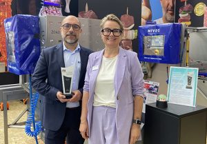 Die MIVEG GmbH aus dem fränkischen Röttenbach wird in zweiter Generation geführt und entwickelt und produziert seit über 25 Jahren praxiserprobte, innovative Lösungen im Bereich Spießprodukion. Ausgezeichnet wurde das neue Skewer System 2040. Es definiert die Herstellung von Grillspießen neu und macht erstmals die automatisierte Herstellung dieser für kleine- und mittelständische Metzgereibetriebe – auch mit Filialen – zugänglich. Dies war bisher nur großen Industriebetrieben möglich. Ohne Umrüsten oder Rüstzeiten können mit einem Produktionswerkzeug zwei verschiedene Spießprodukte in kürzester Zeit hergestellt werden. Das System wirkt dem Mitarbeitermangel entgegen, ersetzt die langsame Handarbeit und steigert die Effizienz im Betrieb bei konstant hoher Qualität. Mit dem Skewer System 2040 sind bis zu 2.040 Spieße/Stunde möglich. Dies erleichtert auch die Produktionsplanung erheblich. Den Preis entgegennahm das Geschäftsführer-Ehepaar Christina und Lars Kracker.