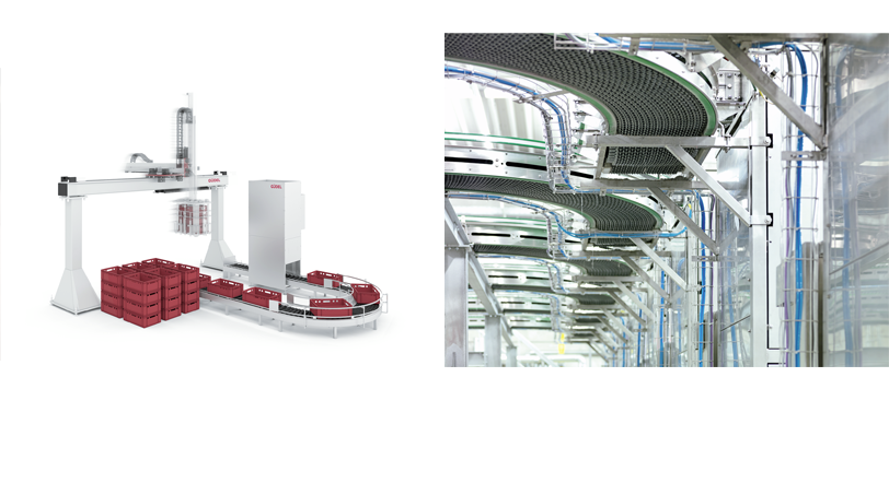 Zerlegeanlagen, Lagertechnik für Leer- und Vollkisten, Modulare Portalroboter, Waschmaschinen und Trockner, Fördertechnik, Kommissionieranlagen