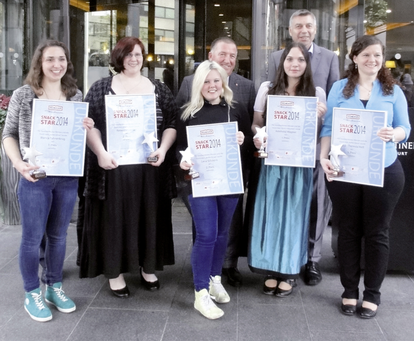 Erstmals wurde der Preis für den kreativen Branchennachwuchs im Rahmen des Partnerprogramms des Deutschen Fleischer-Verbandstages, an dem rund 70 Fachfrauen aus dem deutschen Fleischerhandwerk teilnahmen, in der Weinstube am Römer in Frankfurt/M. verliehen. Der Wettbewerb ist eine Kooperation des Fachmagazins „Fleischer-Handwerk“, dem Deutschen Fleischer-Verband und Homann Foodservice. „Die Fachfrauen im Fleischerhandwerk sind die Stütze des Erfolgs im Fleischerfachgeschäft. Sie haben den Kontakt zum Kunden und sind gefordert, mit ihren Mitarbeitern ständig neue Impulse zu geben. Dazu tragen Sie täglich in ihren Betrieben bei“, betonte Marco Theimer, Chefredakteur von „Fleischer-Handwerk“. In diesem Jahr verzeichnete der bundesweite, zum vierten Mal ausgetragene Wettbewerb für Nachwuchskräfte 13 % mehr Teilnehmer als im Vorjahr. Über 100 junge Leute nahmen daran teil. Die Herausforderung für alle Teilnehmer war es erneut, kreative Snack-Ideen zu entwickeln, diese handwerklich umzusetzen sowie den Wareneinsatz und Verkaufspreis zu kalkulieren. Abschließend sollten sie ihre Kreation mit einem pfiffigen Namen versehen, fotografieren und einschicken. Eine Profi-Jury wählte die Sieger dann Anfang Oktober aus. Dabei wurden die ideenreichen Snacks hinsichtlich Optik, Geschmack, Name, Wirtschaftlichkeit und Praktikabilität bewertet.