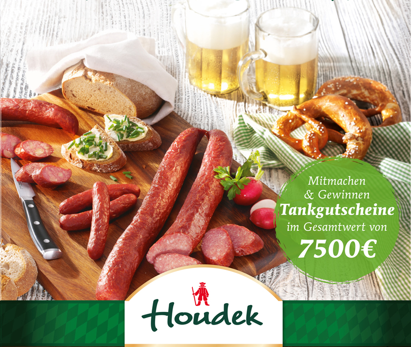 Mit einer Thekenaktion für den Fleischfachhandel forciert die R. u. R. Houdek GmbH den Abverkauf von Original Houdek Kabanos und Knabber Kabanos. Es winken u.a. Tankgutscheine im Wert von insgesamt 7.500 Euro. Im Rahmen der im November stattfindenden Aktion werden Thekenplakate mit dem Slogan „Darf’s ein Bissen mehr sein?“ ausgegeben. Metzgereien, die das Houdek-Banner im Geschäft aufhängen, haben die Chance Tankgutscheine zu gewinnen. Vom 1. bis 30. November 2014 schickt das Familienunternehmen sein Aktionsteam in ganz Deutschland auf die Suche nach dem Aktionsplakat. Jede entdeckte Platzierung wird direkt mit einem 30-Euro-Tank-Dankeschön belohnt. Fleischfachbetriebe, die zudem ein Foto des im Geschäft dekorierten Houdek-Plakates einsenden, können in einer zusätzlichen Verlosung einen von fünf Hauptgewinnen – Tankgutscheine in Höhe von je 300 Euro ergattern. Unterstützt wird die Kampagne im Aktionszeitraum durch Werbungen von Fachgroßhändlern. Teilnahmebedingungen unter: www.houdek.eu/thekenaktion