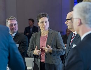 Eine Podiumsdiskussion (siehe Bild oben) mit führenden Vertretern aus Landwirtschaft, Handel und der Fleischbranche bildete den inhaltlichen Kern des Abends. Moderiert von Jörg Thadeusz diskutierten Hubertus Beringmeier (Präsident Westfälisch Lippischer Landwirtschaftsverband e.V. und Vorsitzender Fachausschuss Rind und Schwein der Initiative Tierwohl), Sarah Dhem (Bild mitte, Präsidentin Bundesverband der Deutschen Wurst- und Schinkenproduzenten e.V.), Björn Fromm (Präsident Bundesverband des Deutschen Lebensmitteleinzelhandels e.V.), Clemens Tönnies (Geschäftsführer Premium Food Group), der den ersten Impuls zur Gründung der ITW gab, Peter Wesjohann (Vorstandsvorsitzender Lohmann & Co. AG) und Robert Römer (Geschäftsführer Initiative Tierwohl) über die Perspektiven und Herausforderungen für die Zukunft des Tierwohls in Deutschland. Den Abschluss bildete ein Get-Together, das den geladenen Gästen die Möglichkeit zum Austausch bot.