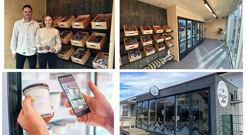 „Wir wollten für unseren Kunden das perfekte, praktische System und entschieden uns für das Start-up Lokbest“, berichtet Franz Petregger. In der App inkl. 24/7-Verkaufssoftware legten sie alle Produkte und generierten danach QR-Codes zum Etikettieren. Und wie kauft man ein? Ein Kunde lädt sich die App herunter, registriert sich mit Namen und E-Mail und betritt via QR-Code im Smartphone und kostenlosem Lesegerät den Shop „Zuhause sieht er, ob das, was er möchte, auch da ist“, sagt Franziska Schalk. Danach scannt er via Handy QR-Codes auf den Produkten, die im virtuellen Warenkorb landen und bezahlt via ApplePay, PayPal oder Karte. Zwei Kameras, die auf Bewegung reagieren, überwachen das Ganze.