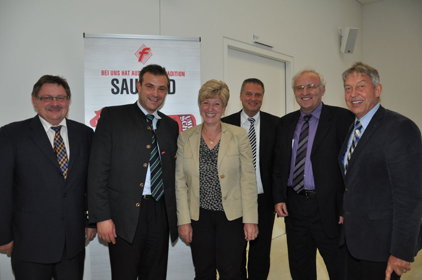 Im Veranstaltungssaal des Staatsministeriums für Ernährung, Landwirtschaft und Forsten begrüßte der bayrische Landesinnungsmeister Georg Schlagbauer Landtagsbgeordnete aller Parteien zum kulinarischen Abend des Fleischerverband Bayern. Neben Staatssekretär Gerhard Eck (MdL) waren unter anderem Angelika Schorer, Vorsitzende des Arbeitskreises für Ernährung, Landwirtschaft und Forsten, sowie Dr. Otto Hünnerkopf, Leiter des Arbeitskreises Umwelt und Verbraucherschutz, anwesend. Themen wie Landesentwicklungsprogramm, EEG-Umlage oder der Sachkundenachweis Schlachten wurden diskutiert. Georg Schlagbauer verdeutlichte, dass das bayerische Metzgerhandwerk ein bedeutender Wirtschaftsfaktor ist: „In 4.180 Betrieben wird von 41.500 Personen ein Gesamtjahresumsatz von über 4.273 Mio. Euro erwirtschaftet.“ 966 Lehrlinge stünden derzeit in einer Ausbildung. Diese Leistungen könnten aber nur mit hochqualifizierten Selbstständigen und Fachkräften erbracht werden: „Wir brauchen umfassend ausgebildete Meister und solides Fachpersonal. In beiden Bereichen wird uns aber derzeit das Leben schwer gemacht.“