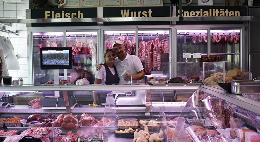 Wien-Liesing ist ein Vorort im Umbruch. Die letzten alten Einfamilienhäuser weichen Familiendomizilen, Flachbauten und Kita-Tagesstätten. Wie aus der Zeit gefallen sieht ein altes Wiener Wohnhaus hier aus, mit hellgrau gefliester Fassade und den kleinen Fenstern der Fleischerei Hödl. Drinnen erwarten die Kunden eine heimelige Ladenatmosphäre, hausgemachte Wurstwaren und eine reichhaltige Fleischauswahl. Dazu gibt es persönliche Ansprache frei Haus. Inhaber Christoph Hödl verkauft selbst, wenn es die Situation erfordert. Einige der „alten“ Stammkunden, die er mit Namen anspricht, legen Wert darauf vom Chef bedient zu werden. Das Ladengeschäft mit hauseigener Schlachtung und Zerlegebetrieb führt der Metzgermeister gemeinsam mit seiner Frau Maria und einem Team von 13 Mitarbeitern, darunter fünf Metzger.