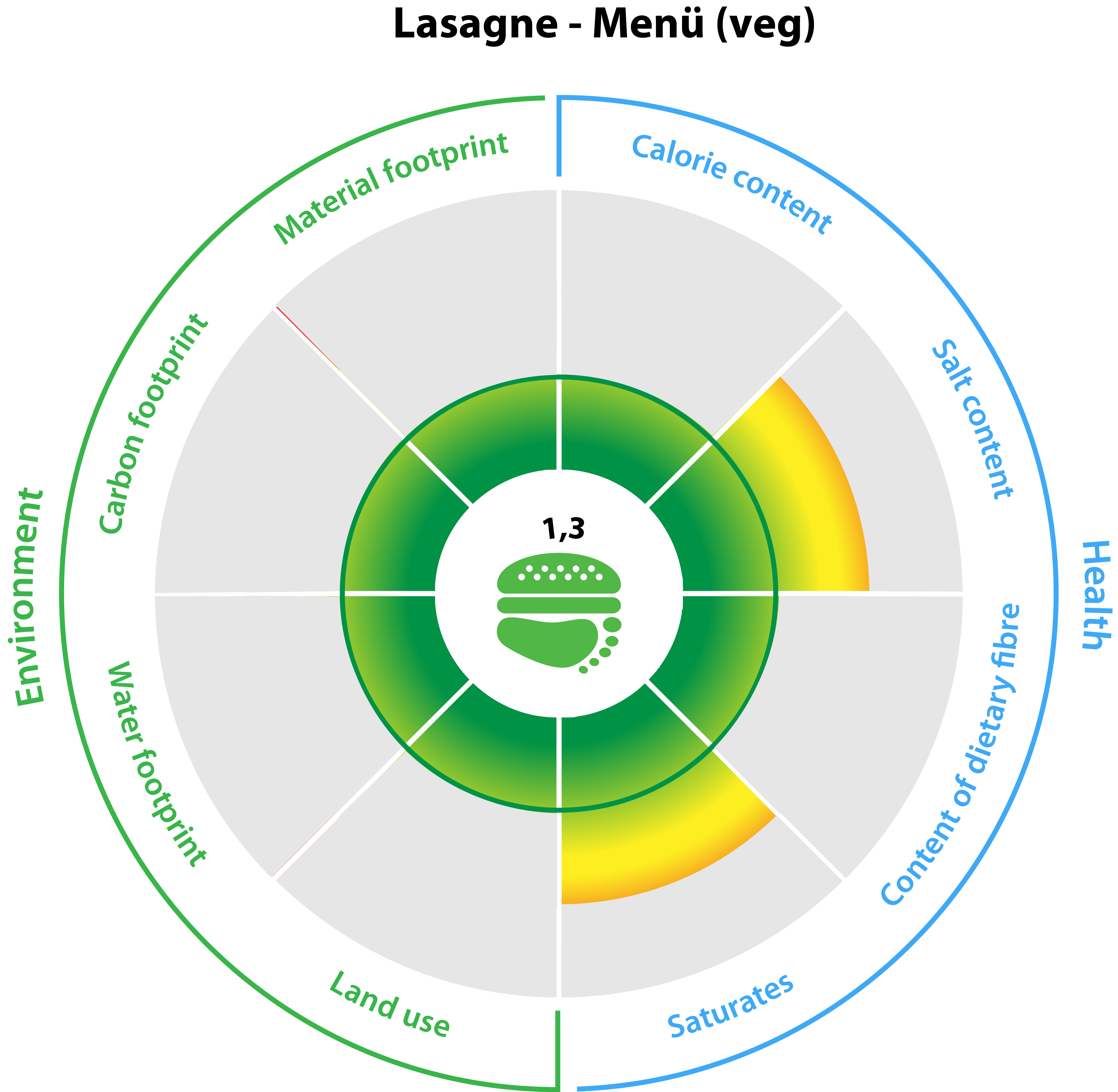 Als Indikatoren für Gesundheit werden verwendet: Energiegehalt, Salzgehalt, Anteil an Ballaststoffen und gesättigten Fetten. Die Umweltindikatoren sind: der “ökologische Rucksack” (Ressourcenverbrauch), der CO2-Fußabdruck, der Wasserfußabdruck und der Flächenverbrauch.
