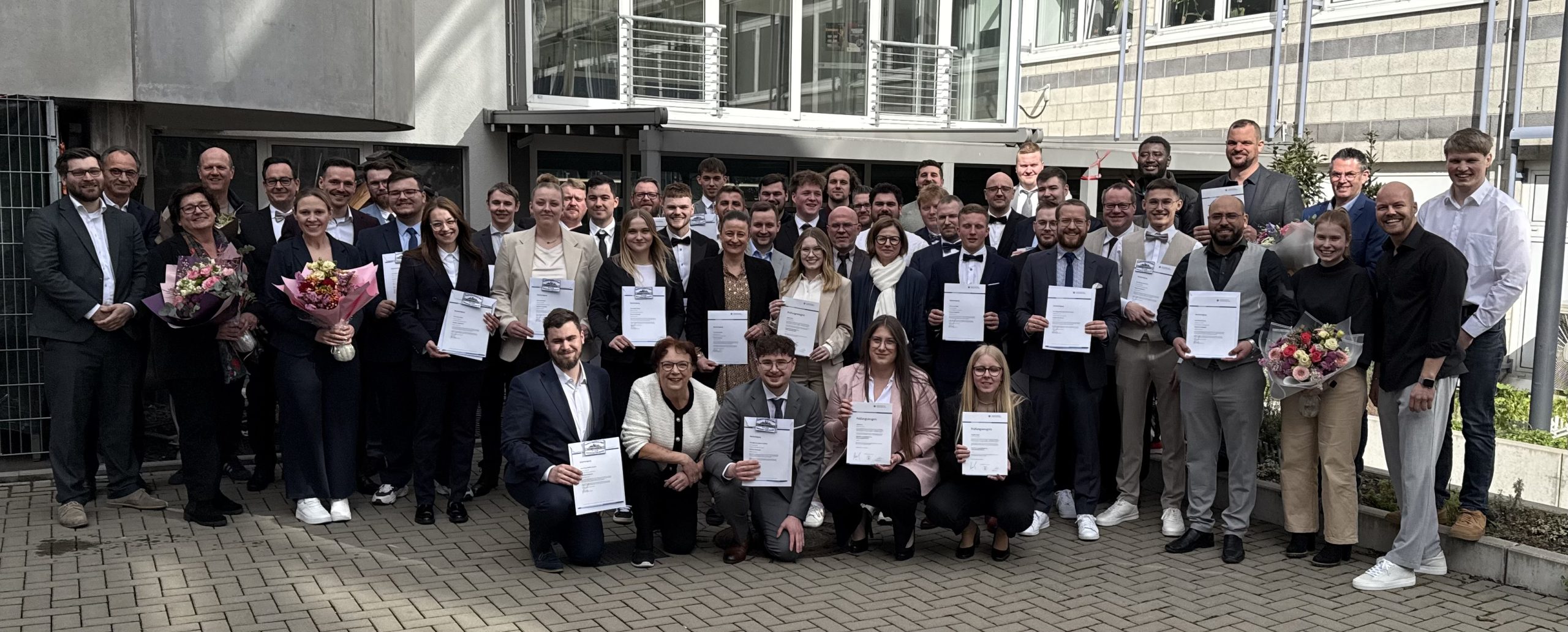 Meister fallen nicht vom Himmel – sie kommen aus Weiterstadt. 31 junge Führungskräfte absolvierten den Meisterkurs an der Fleischer- und Bäcker-Fachschule J. A. Heyne an der Handwerkskammer Frankfurt-Rhein-Main. Die Freude war groß als die 31 Fleischergesellinnen und -gesellen gemeinsam mit einer frisch geprüften Verkaufsleiterin im Nahrungsmittelhandwerk, Fachrichtung Fleisch, als neue Führungskräfte im Handwerk erleichtert über die Ziellinie gingen.
