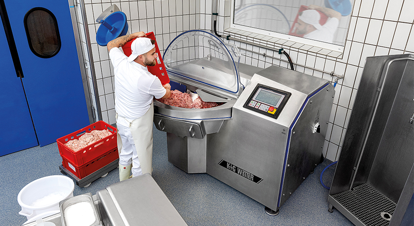 Dass auch Heinrich-Spezialitäten die weihnachtlich gedeckten Tafeln rund um Burladingen auf der Schwäbischen Alb bereicherten, ist dabei Ralf Klein zu verdanken. Den zuständigen Gebiets-Verkaufsleiter von K+G Wetter erreicht der Kutter-Notruf von Seniorchef Peter Heinrich um 9 Uhr morgens, kurz nach der Havarie der rund 16 Jahre alten Maschine. „Wir haben schon einen Winkelwolf von K+G Wetter und sind damit sehr zufrieden. Der ist zuverlässig und auf dem neuesten Stand der Technik“, erklärt Peter Heinrich die Entscheidung, sich auch beim Thema Kutter sofort an das hessische Unternehmen zu wenden. Sein Glück: Ralf Klein hat eine passende gebrauchte Maschine zur Verfügung, setzt alle Hebel in Bewegung und der Kutter ist noch am selben Abend um 21 Uhr in der Wurstküche startklar. „Herr Klein hat uns da auch sofort noch gut eingeschafft“, sagt Peter Heinrich, der nach kurzen Einarbeitung alle Wurstspezialitäten für die Weihnachtstage produzieren konnte.
