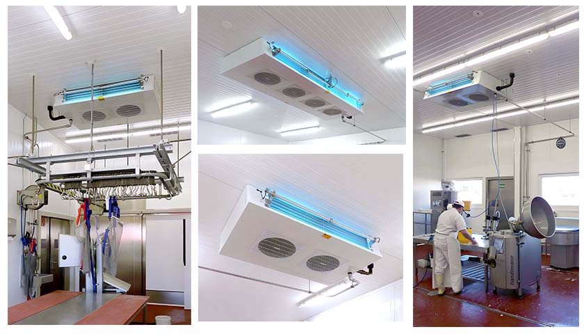 Die mikrobiologische Qualität der Raumluft wird in der Metzgerbranche als entscheidender Hygienefaktor oft unterschätzt. Denn: Sie leistet einen entscheidenden Beitrag zur finalen Qualität und Haltbarkeit der Fleisch- und Wursterzeugnisse. Produktions- und Kühlräume werden mittels Raumluftkühlern (Verdampfer) gekühlt. Vielen Herstellern von Lebensmitteln ist nicht bewusst, dass genau hier die größte Kontaminationsquelle liegt. Aerosole, die u.a. bei der Nassreinigung entstehen, werden von Raumluftkühlern angesaugt. Diese kleinen Wassertröpfchen enthalten Staub, Produktreste und Mikroorganismen. Am Verdampfer sammeln sich die Keime und vermehren sich dort. Nach und nach werden Kühllamellen und das Innere des Verdampfers mit einem Biofilm überzogen. Aufgrund hoher Luftströme durch den Luftkühler – die durch das Zusetzen der Lamellen verstärkt werden – können Bestandteile des Biofilms in den Raum hinausgetragen werden. Hier kontaminieren sie die Luft, produktberührende Oberflächen oder das verpackungsfertige Endprodukt.