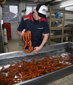 2021 tat sich eine weitere „Tür“ auf – die Belieferung der Edeka-Märkte Dillinger (3x/Woche), die einen regionalen Metzger als Zulieferer suchten. „Seitdem können die Kunden Topseller wie Würstl aller Art, Leberkäs, Aufschnitt, etc. in zwei Märkten in Kelheim und je einem in Langquaid, Bad Abbach und Schierling kaufen, keine SB-Ware“, sagt er. Die Wurstspezialitäten mit Resch-Logo gibt es im separaten Thekenbereich (1,50 m) der Bedientheke zum gleichen Preis wie in den Geschäften der Metzgerei sonst auch. „So bekommen die Leute unsere handwerklichen Spezialitäten auch nach 18 Uhr. Ein weiteres gutes Standbein. Letztlich profitieren wir und der Händler davon“, betont Markus Resch.