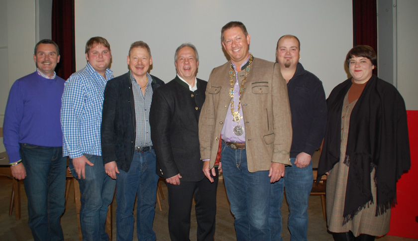 Im Bild (v.l.n.r.): Johann Raab, Manuel Englberger, Karl Reichlmayr, der stv. Obermeister Manfred Friedl, der neue Obermeister Andreas Gaßner, Christian Eberl und Eva Probst