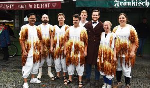 Gut beschirmt sprachen Münchens Obermeister Andreas Gaßner, Oberbürgermeister Dieter Reiter, der Altgeselle und Lehrlingswart Hubert Gerstacker und der Junggeselle Juri Krafft ihre Grußworte. Danach rief das echte Münchner Kindl – Franziska Inselkammer, die dieses Ehrenamt seit fast drei Jahren innehat – den Anwesenden zu: „Gebet meinen Münchnern, seid’s so nett, stets nur beste Qualität – dann kann ich immer sorgenfrei, stolz auf meine Metzger sei“.