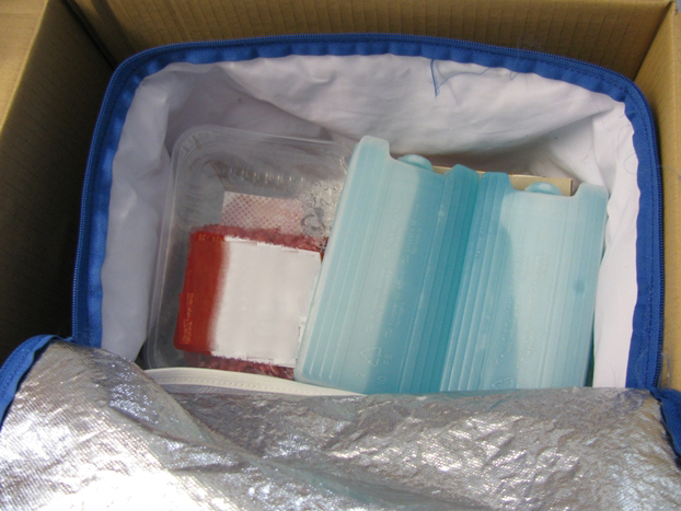 Aus Recherchedaten der Zentralstelle „Kontrolle der im Internet gehandelten Erzeugnisse des LFGB und Tabakerzeugnisse“, kurz G@Zielt, die das Bundesamt für Verbraucherschutz und Lebensmittelsicherheit (BVL) seit Juli 2013 beherbergt, wurden Online-Händler ermittelt, die kühlpflichtige Ware (vor allem Fleischwaren) verkaufen. Der Testkauf fand bei einem Händler statt, der seine Waren per Paketdienst ausliefert. Bestellt wurden rohes Hackfleisch und rohe Hähnchenleber. Die Waren wurden nicht in einem speziellen Kühltransport, sondern per Paketservice in einem ungekühlten Fahrzeug angeliefert. Das eingesandte Paket wies keinen Kühlhinweis auf. Schon bei der Anlieferung konnten die zur Kühlung in die Packung eingelegten Kühlelemente keine Kühlleistung mehr erbringen, da ihr Inhalt schon verflüssigt war. Bei beiden Produkten lag die Eingangstemperatur demnach auch zwischen +16 und +17 °C. Die Kühlkette war unterbrochen. Zudem war die Kühltasche innen verschmutzt.