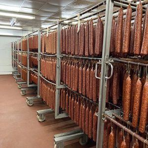 Nach ihrem gemeinsamen Meisterkurs an der Fleischerschule Augsburg 2022 reifte der Entschluss sich mit Ahle Wurst und einem hochwertigen Event-Catering mit hausgemachten, nach individuellem Kundenwunsch zubereiteten Speisen selbständig zu machen. So starteten sie im Herbst 2022 in Felsberg-Gensungen „Fettenbrot & Kaviar“ und stellten zu zweit zudem in gepachteten Räumen einer Fleischerei von Niklas Onkel aus einem halben bis ganzen Schwein pro Woche Ahle Wurst und Rohwürste her. Diese verkaufte Niklas Stieglitz zunächst in wenigen umliegenden Edeka-Märkten, später kam eine ganze Reihe weiterer im Umkreis von 30 bis 40 km hinzu. „Mit dem Catering wuchsen wir erfolgreich, in Sachen Wurstproduktion stießen wir aber an Grenzen und sahen uns im Landkreis nach größeren Räumen oder anderen Metzgerkollegen um“, berichtet Alisa Stieglitz. Im November 2023 bekam Axel Kramer von einem Bekannten eine ihrer Ahlen Würste zum Testen auf den Tisch.