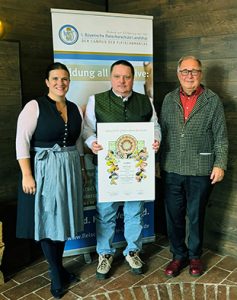 „Die Kostproben ihres Könnens haben wieder deutlich werden lassen, welch hohen Anspruch ihr als Fleischsommelier erfüllt und welchen wesentlichen Beitrag ihr als Genussbotschafter für unsere Branche leistet“, gratulierte Schulleiterin Barbara Zinkl-Funk (li.). Der Kursbeste Holger von Ende (mi., 52) aus Schnellroda erhielt als Anerkennung für seine großartige Leistung einen Bildungsgutschein der 1. BFS in Höhe von 300 Euro sowie ein Landshuter Buchskranzerl.
