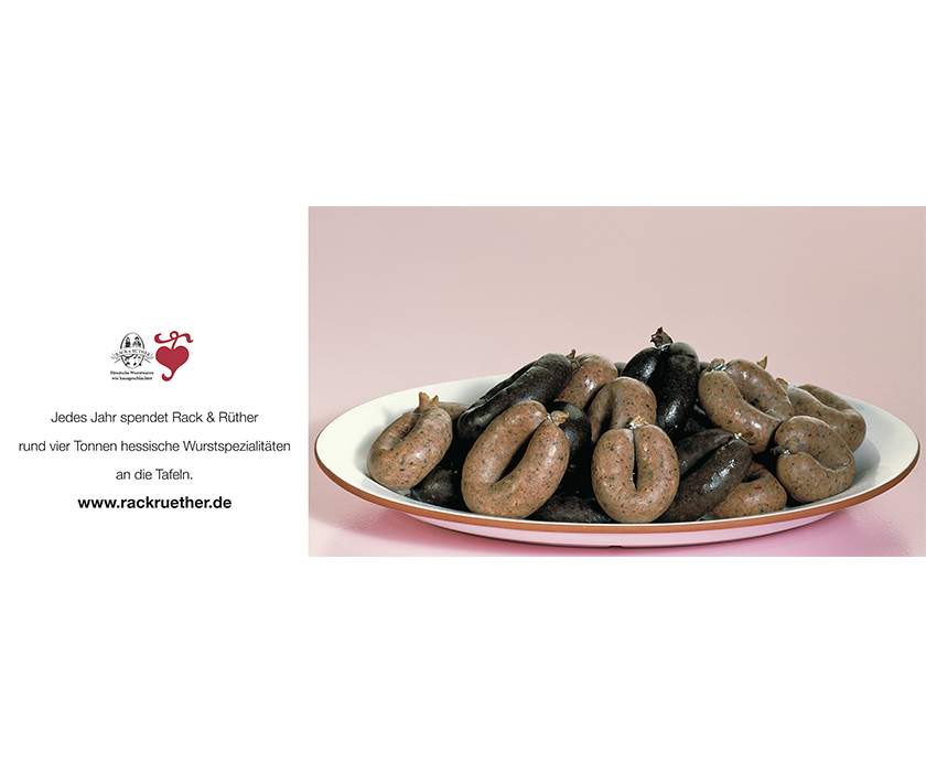 Wurst ist bei dem kostenlosen Lebensmittelangebot eine Rarität, deshalb sind die Vorsitzenden der Tafeln (Baunataler Tafel, Eschweger Tafel und Kasseler Tafel) sehr erfreut über das breite Sortiment an Leberwurst, Blutwurst, Mortadella, Jagdwurst, Sülzen und Rohwürsten, oft in Bio Qualität. Produkte, die ansonsten nur in den besten Geschäften Deutschlands erhältlich sind. Besonders glücklich macht das die Allergiker, denn die Rack & Rüther-Würste sind auch von der Stiftung European Centre for Allergy Research Foundation mit dem ECARF-Qualitätssiegel zertifiziert worden.