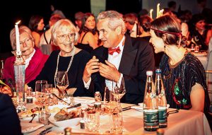 Am ersten Abend nahmen die Festlichkeiten mit einer glanzvollen Varieté-Veranstaltung, moderiert von CEO Florian Knell, ihren Auftakt. Unter den rund 250 Gästen waren langjährige Kunden und Lieferanten, Dienstleister und weltweite Vertriebspartner sowie Vertreter aus Politik, Verwaltung und Wirtschaft. Die Inhaberfamilie Kühne war mit drei Generationen anwesend. Der Höhepunkt des Abends war eine sehr persönlichen Rede von Frank Kühne, Mitglied der Gründerfamilie, Hauptgesellschafter und Beiratsvorsitzender von Raps und Vorsitzender der Adalbert-Raps-Stiftung. Auch ein Kurzfilm mit Grußworten, u.a. von Thomas Gottschalk und Uli Hoeneß, sowie die Showeinlagen zählten zu den Highlights des Abends. Im Bild von links: Senta Pfeiffer, Annegret Kühne, Florian Knell und Frau Dr. Kühn