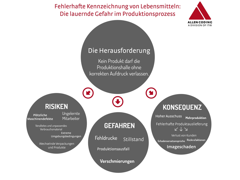 Ein Praxishandbuch von Allen Coding zeigt Risiken im Kennzeichnungsprozess auf und vermittelt Lösungen. Kein Unternehmen, das Lebensmittel produziert und/oder verpackt, kommt um einen Kennzeichnungsprozess herum. Die Bedruckung von Waren bzw. deren Verpackungen mit Codes, Chargen-Nummern, Verfallsdaten etc. ist ein wichtiger Teilprozess in der Food-Supply-Chain. Dabei die Sicherheit und Flexibilität des gesamten Produktionsprozesses nicht zu gefährden, ist schwieriger, als vielen Unternehmern bewusst ist.