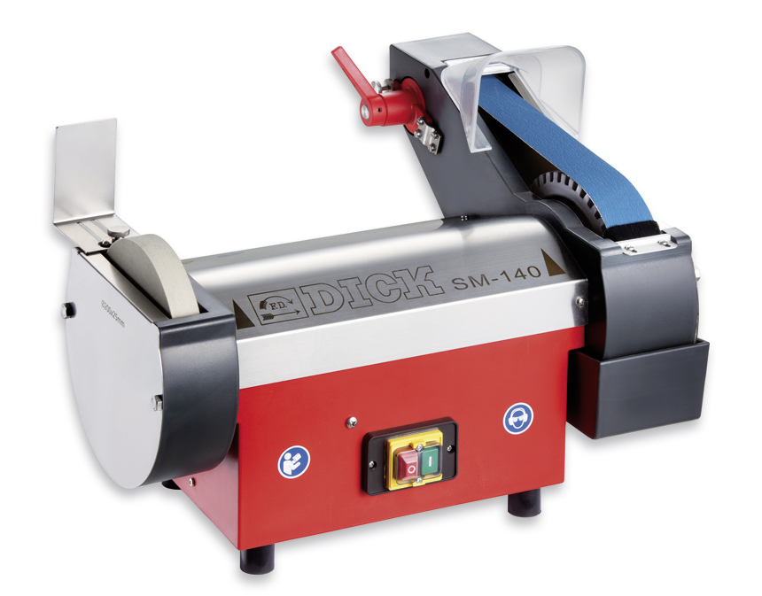 Die Nassbandschleifmaschine SM-140 UltraSharp stellt Friedrich Dick auf der IFFA vor. Damit wird der Hersteller verschiedenen Schleifansprüchen in Handwerk und Industrie gerecht. Die Maschine entspricht den neuesten EU-Maschinenrichtlinien. Neu bei dieser Maschine ist die Wasserkühlung für das Band. Damit lassen sich Hand- und Maschinenmesser sowie Werkzeuge schleifen. Die robuste Ausführung dank Edelstahlgehäuse und Drehzahloptimierung sorgt laut Hersteller für beste Schleif- und Polierergebnisse. Ein Nullspannungsauslöser ist ein weiterer wichtiger Vorteile des Gerätes. Auf dem langen Schleifband (1.000 mm lang und 50 mm breit) lässt sich schnell und materialschonend ein neuer Anschliff anbringen sowie Beschädigungen der Schneide herausschleifen. Die Wasserkühlung verhindert ein Überhitzen der Schneide und bindet den Schleifstaub. Auf der Filzpolierscheibe erfolgt das Abziehen und Polieren der Schneide. Die Maschine ist im Fachhandel erhältlich.