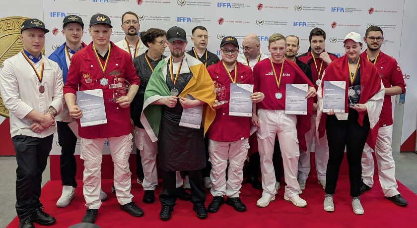 David Hilpert, Mitglied der Nationalmannschaft des Fleischerhandwerks und Fachlehrer an der Fleischerschule J.A. Heyne (BTZ Weiterstadt), qualifizierte sich im internationalen Auswahlverfahren für die „EuroSkills 2025“ als Sieger. Im Rahmen der Fachmesse IFFA in Frankfurt am Main setzte sich der junge Spitzenfachmann in einem hochkarätigen Teilnehmerfeld gegen seine Mitbewerberin und seine Mitbewerber durch. Den zweiten Platz belegte Carolin Pirott aus Österreich, auf Platz 3 gefolgt von Hannes Maisel, der ebenso zur deutschen Nationalmannschaft des Fleischerhandwerks gehört. Insgesamt traten acht Nachwuchstalente aus fünf Nationen – Deutschland, Österreich, der Schweiz, Island und Irland – gegeneinander an. Sie alle nutzten die Gelegenheit, sich unter realitätsnahen Bedingungen mit internationalen Kolleginnen und Kollegen zu messen.