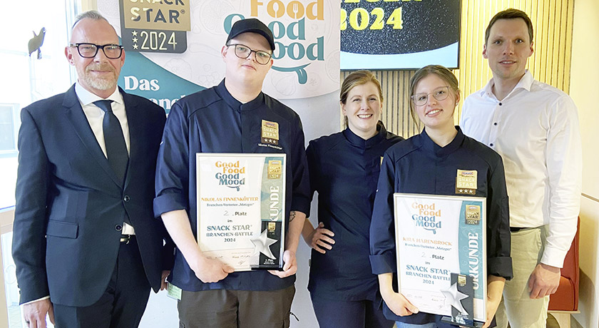 Im Finale des zum 3. Mal als Branchen-Battle durchgeführten Nachwuchswettbewerbs Homann SnackStar holten die Fleischer-Azubis Kira Harenbrock (21, in Vertretung von Nico Bühning) und Nikolas Finnenkötter (21) den silbernen Pokal. Zum Sieg fehlten den beiden nur 0,5 Punkte. Den goldenen Pokal sicherte sich der gelernte Koch Julian Kunz (24), der im Berliner Restaurant „Oxymoron“ in den Hackeschen Höfen am Saucier-Posten arbeitet. Auf Platz 3 kamen die beiden Auszubildenden zum Bäckerei-Fachverkauf Kateryna Drankova (30) und Jenny Pfob (19), die sich ebenso über ihren bronzenen SnackStar-Pokal freuten. Bis auf den Sieger waren alle Auszubildenden im zweiten Lehrjahr. 2024 fand der 2011 gestartete Nachwuchswettbewerb zum 13. Mal statt. Schüler und Schülerinnen von elf Berufsschulen nahmen mit 75 Rezepten teil. Erstmals enthielten alle jeweils 20 Finals-Snacks kein Fleisch. Das Motto lautete: „Good food, good mood“.