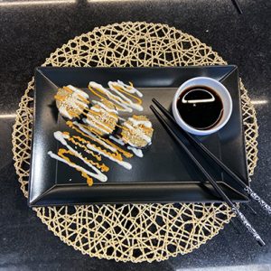 Fleischer: Kira Harenbrock (21), Ausbildungsbetrieb: Edeka Neuhäuser, Billerbeck; Nikolas Finnenkötter (21), Ausbildungsbetrieb: Marktkauf Münster-Gievenbeck; (beide Berufskolleg Rheine); Snack-Kreation: „Qui-Shi“ (Bild: links), Kombi: Quinoa + Súshi, (Homann Snack Sauce Paprika Frischkäse, Homann Snack Sauce Joghurt Knoblauch, Bonduelle Quinoa Noriblätter, Bonduelle gegrillte Paprika)