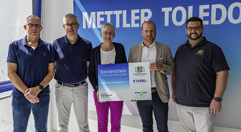 Mit einer Summe von 13.500 Euro als Spende unterstützte Mettler Toledo die „Tour der Hoffnung“. Andreas Weninger, Geschäftsführer der Mettler-Toledo GmbH in Gießen, wechselt in Kürze in gleicher Position innerhalb des Konzerns nach Nordamerika. Eine seiner letzten Amtshandlungen war eine besonders schöne, denn er übergab er im Beisein von Personalleiter Manfred Merz eine Spende in Höhe von 13.500 Euro an die „Tour der Hoffnung“.