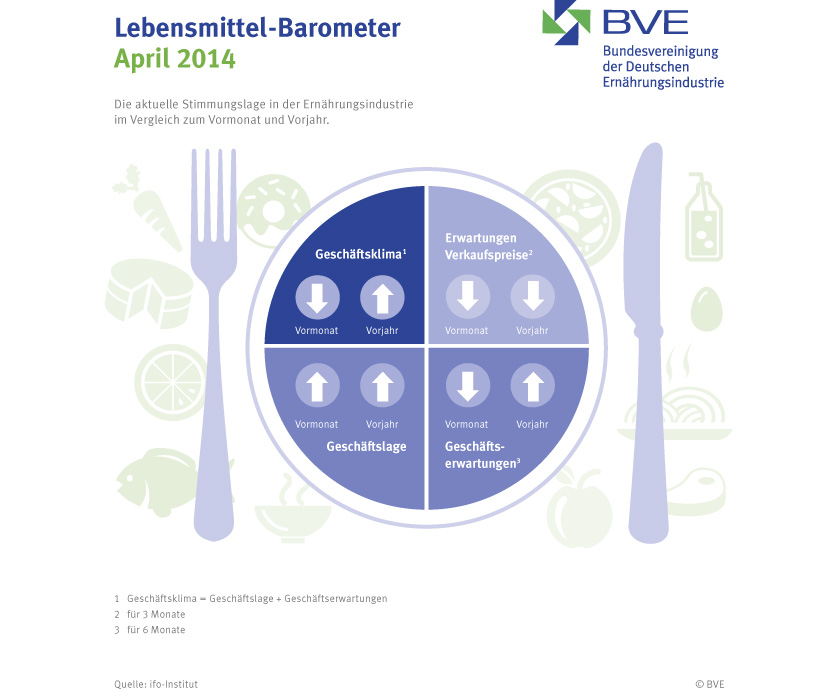 Die Stimmung bei den Unternehmen der Ernährungsindustrie ist laut ifo-Geschäftsklimaindex April 2014 ausgewogen. Trotz verbesserter Geschäftslage zeigen sich die Erwartungen der Branche aber wieder zurückhaltender. Steigende Produktionskosten drücken immer weiter auf die Erträge der Lebensmittelhersteller.