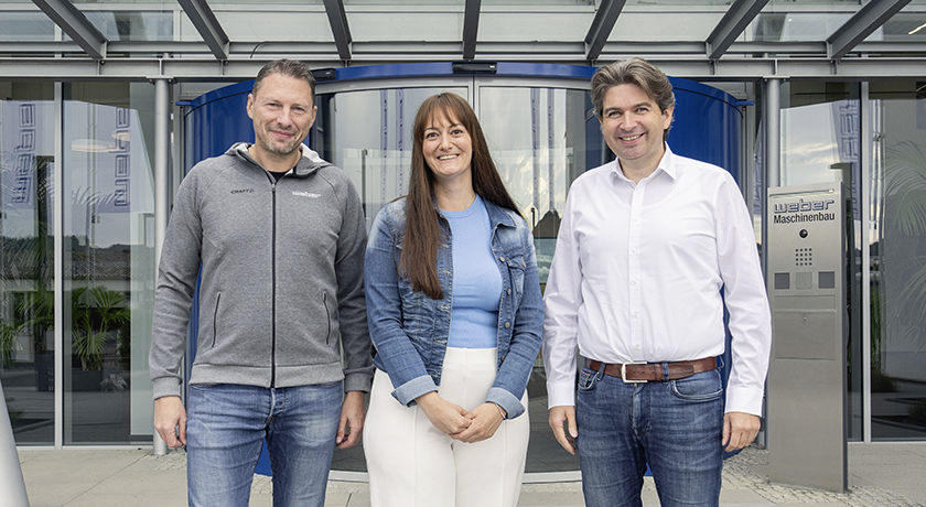 Im Bild oben (v.li.): Christian Hartmann (Weber Food Technology), Esther Mara Junker (Kinder- und Jugendhospiz Balthasar), Tobias Weber (Weber Food Technology)