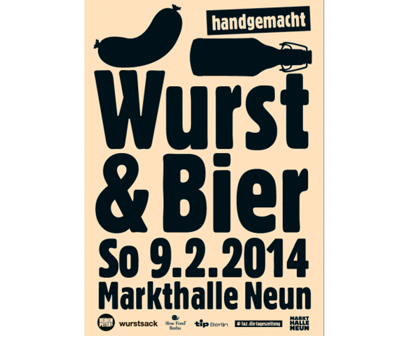 Beim Wurst & Bier-Markt am Sonntag, 9. Februar 2014 in der Markthalle Neun, präsentieren sich handwerklich arbeitende Metzgereien und Brauereien aus Berlin und Brandenburg und aus anderen Regionen. Sie alle produzieren im Sinne von Slow Food: handwerklich, mit natürlichen Zutaten und Fleisch von Tieren aus artgerechter Tierhaltung.